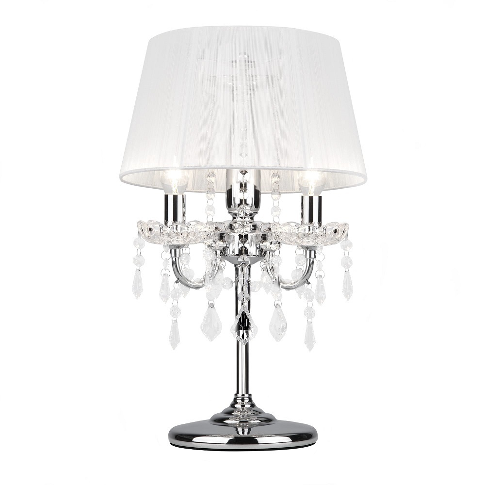 Является необходимым атрибутом для создания качественного освещения настольного рабочего пространства и может использоваться как дополнительный источник света в прикроватной зоне. В светильнике используется сменная лампа E14 с рекомендованной максимальной мощностью 40 Вт. Благодаря белому тканевому абажуру настольная лампа создает мягкое рассеянное свечение, подходящее для комфортного чтения книг в вечернее время. Прочный металлический корпус светильника устойчив к механическим воздействиям, а защитное покрытие обеспечивает надежную электроизоляцию и презентабельный внешний вид. Лампа украшена декоративным хрусталем, выполненным из особого стекла с эффектной огранкой.