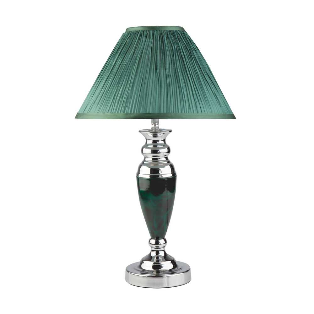 Благодаря зеленому тканевому абажуру настольная лампа создает мягкое рассеянное свечение, подходящее для комфортного чтения книг в вечернее время. Прочный металлический корпус светильника устойчив к механическим воздействиям, а защитное покрытие обеспечивает надежную электроизоляцию и презентабельный внешний вид.