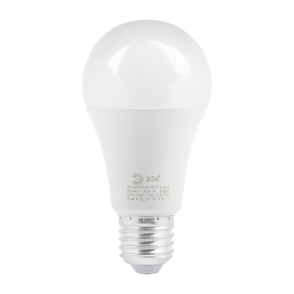 Лампа светодиодная Эра E27 4000К 20 Вт 1600 Лм 220-240 В груша А65 матовая