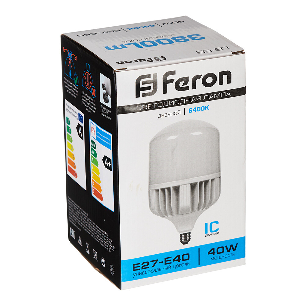 Лампа светодиодная Feron Е27/Е40 6400К 40 Вт 220 В цилиндр T100 матовая