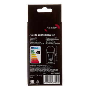 Лампа светодиодная Hesler E27 2700К 9 Вт 855 Лм 230 В груша А60 матовая