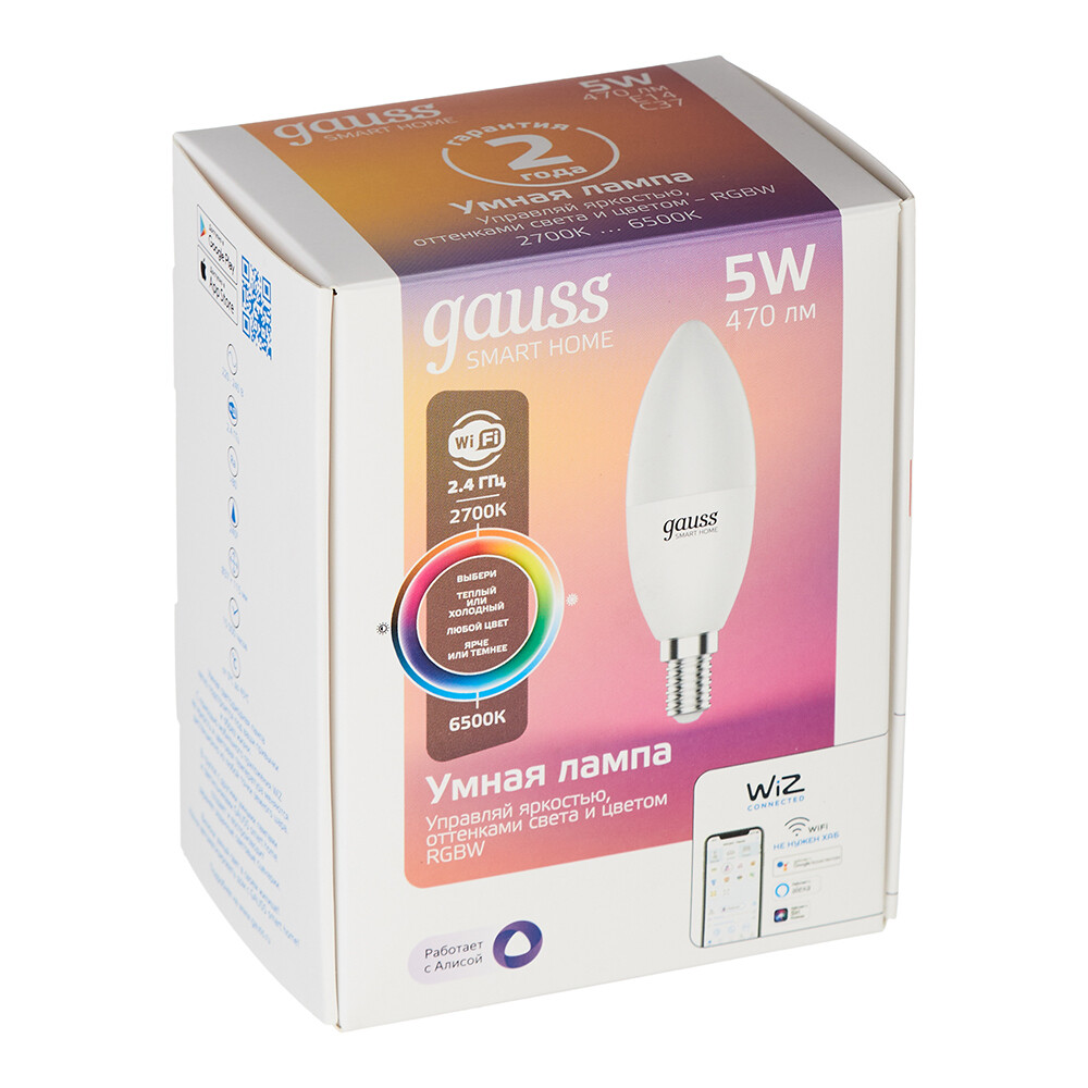 Лампа умная светодиодная Gauss E14 2700-6500К 5 Вт 220 В свеча матовая