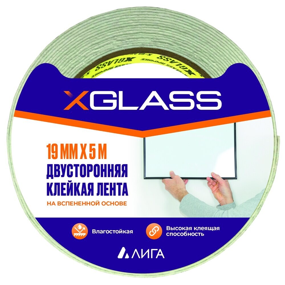 Лента клейкая X-Glass двусторонняя на вспененной основе белая 19 мм 5 м