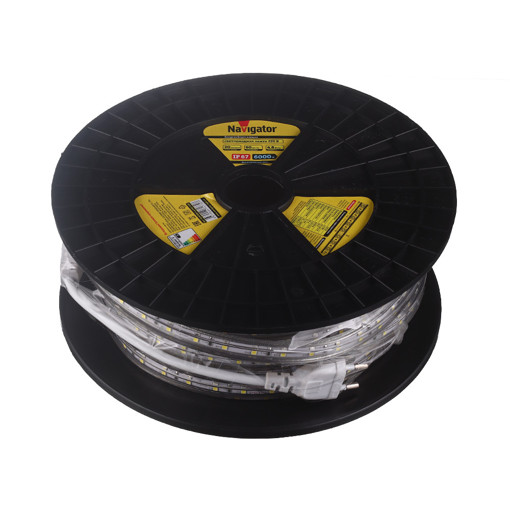 Лента светодиодная SMD 3528 6000К 220 В 4,8 Вт/м 20 м IP67 Navigator (14511)