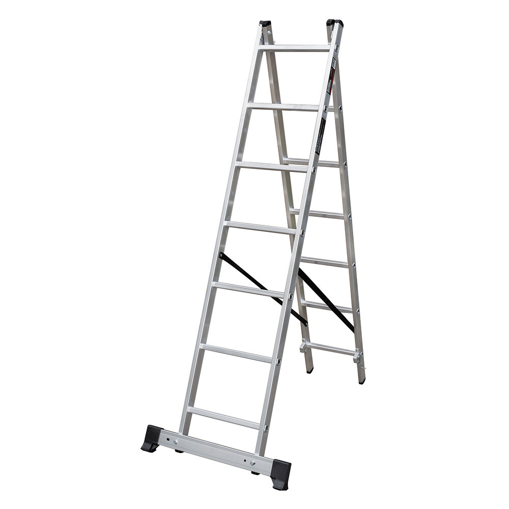 Лестница алюминиевая трансформер двухсекционная 7 ступеней Hesler бытовая