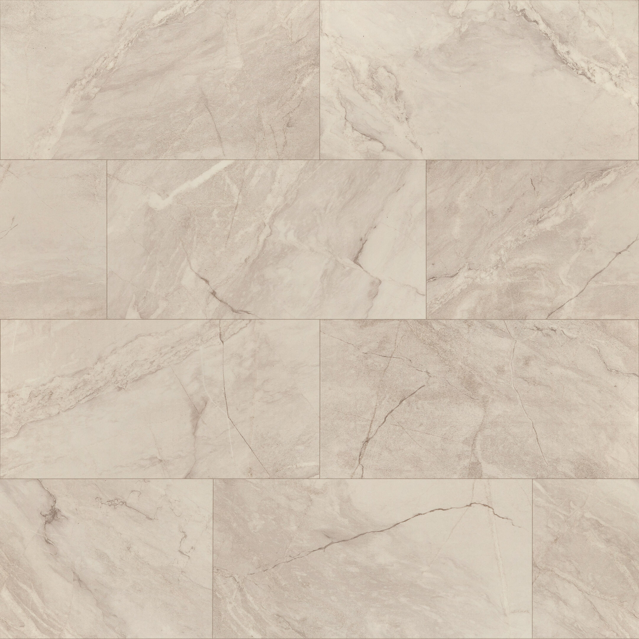 Мраморная плитка с элементами травертина сочетаются в комфортном бытовом линолеуме, предназначенном для жилых помещений.