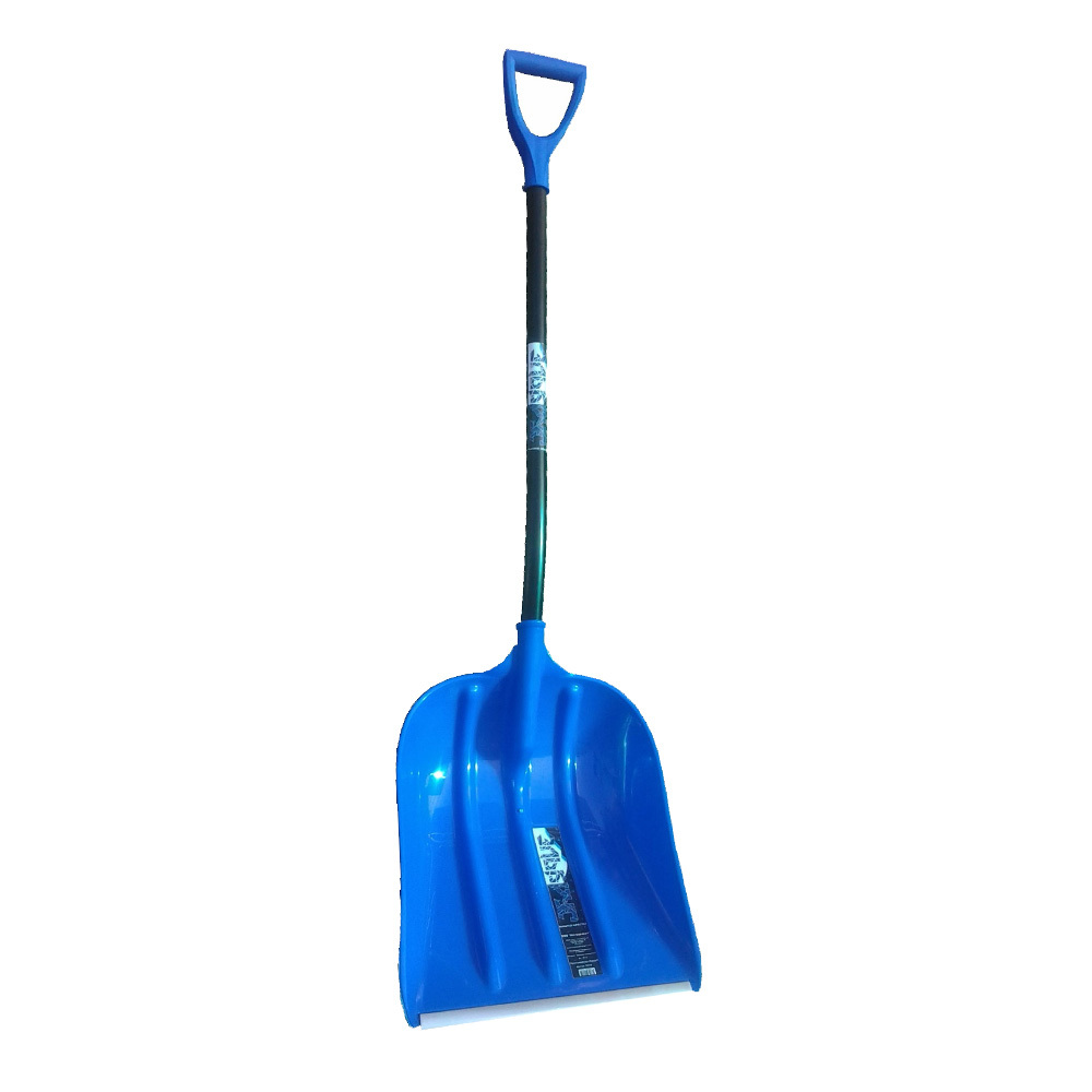 Ковш лопаты изготовлен из первичного блоксополимера пропилена специальной марки. Используемый суперконцентрат «Ультрамариновый» придаёт яркий внешний вид лопате. Благодаря качественному материалу получено изделие высокой прочности. Кромка лопаты защищена специальным алюминиевым профилем с небольшим закруглением по краю. Это позволяет легче убирать снег, где территория не очень ровная. Несмотря на среднюю ширину 400 мм, лопата имеет вытянутый глубокий ковш, позволяющий убирать большое количество снега. Работать данной лопатой будет удобно за счет алюминиевого черенка, снижающего нагрузку на позвоночник. Сам черенок изготовлен из алюм. профиля, окрашенного порошковой окраской, что позволило значительно снизить вес лопаты в сборе и избежать свойства алюминия пачкаться во время соприкосновения с ним. Лопатный черенок заканчивается эргономичной и крепкой V-образной ручкой. Соединение ковша лопаты с черенком происходит с помощью надёжного пружинного металлического фиксатора, который позволяет снять ковш лопаты.