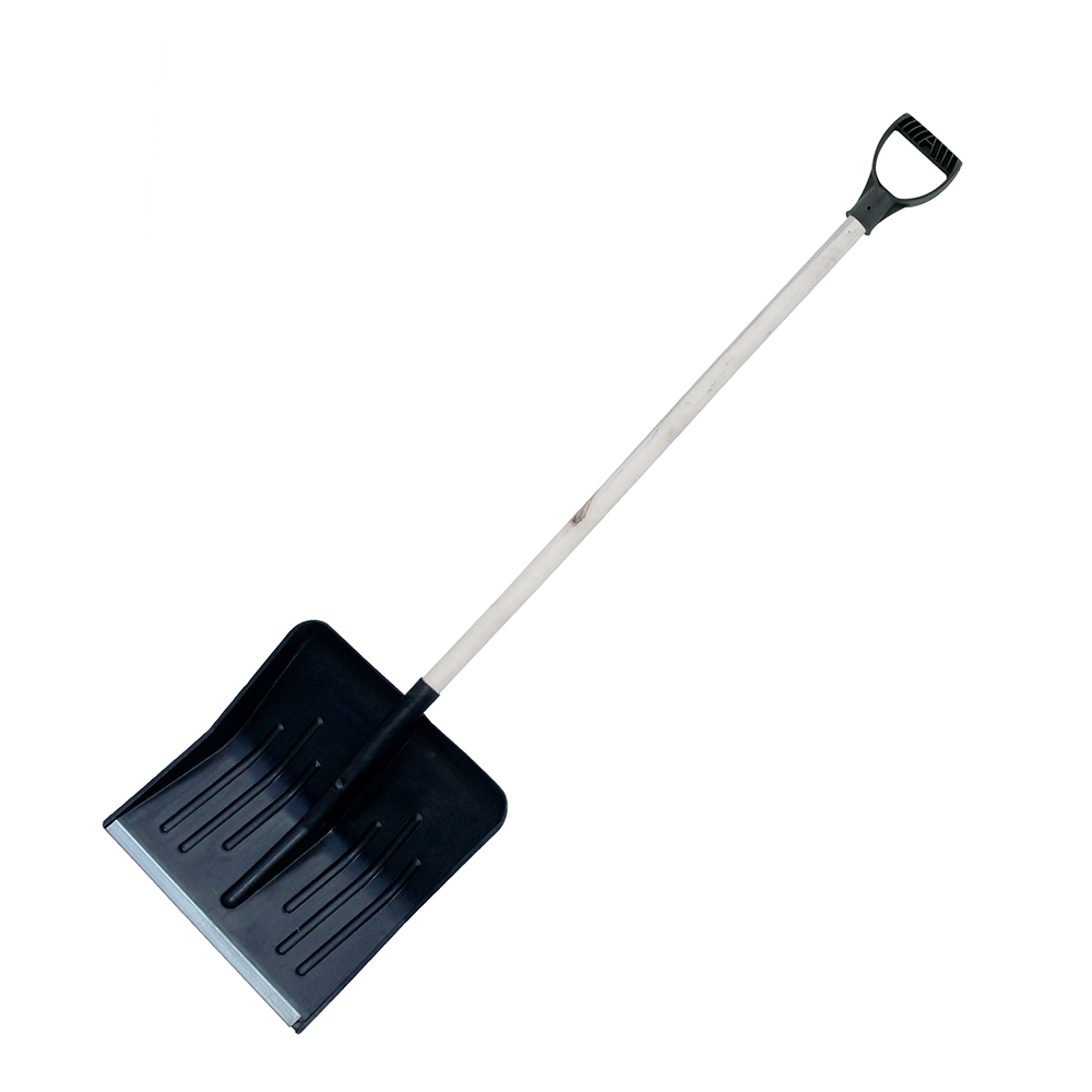 Лопата снеговая пластмассовая с деревянным черенком и пластиковой рукояткой предназначается для уборки снега во дворах, на частных территориях, в гаражном секторе. Ковш изготовлен из прочного полипропилена и дополнительно усилен при помощи ребер жесткости. Имеет удобную в работе ковшеобразную форму, позволяющую захватывать большие объемы снега.
