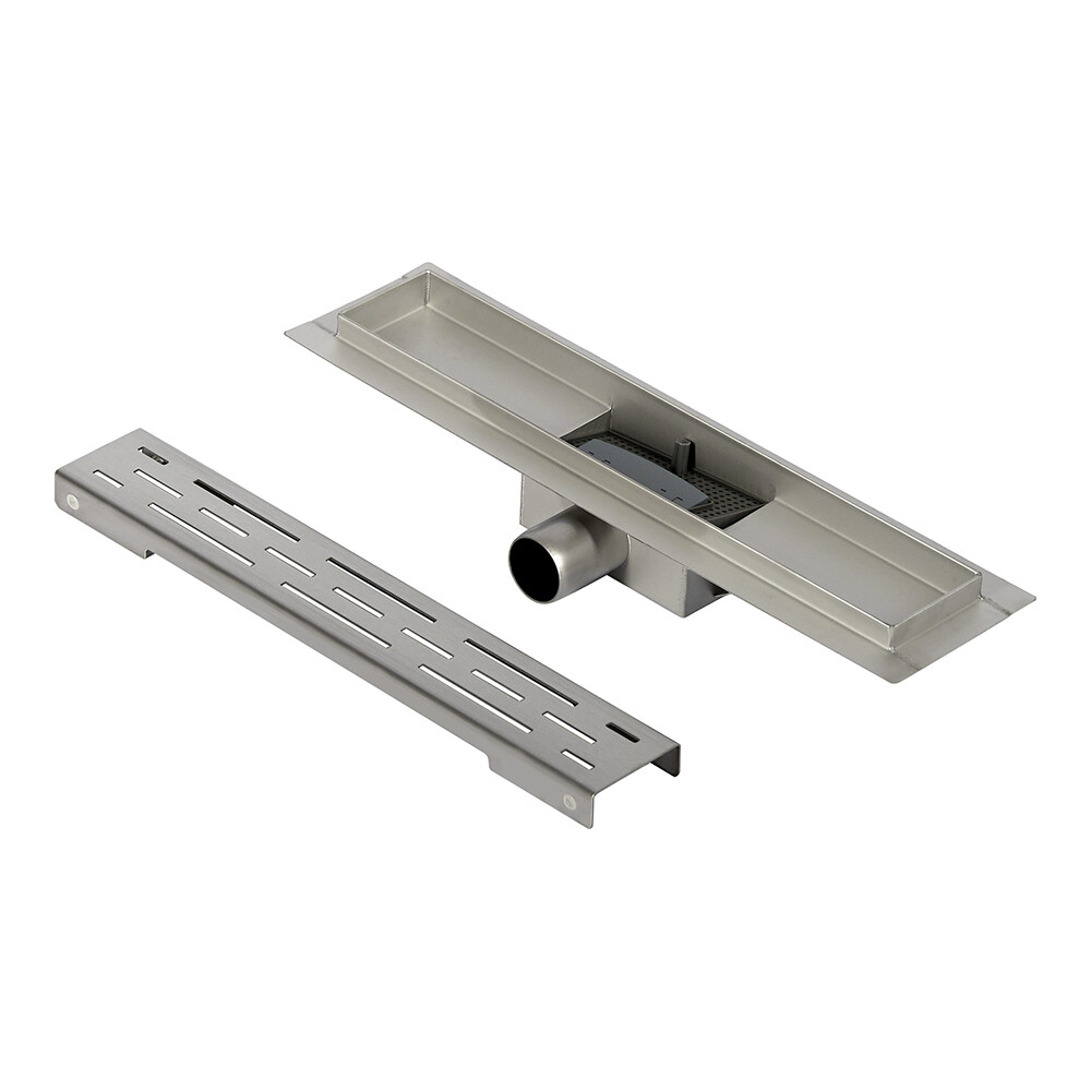 В комплекте имеет съемный гидрозатвор с сетчатой ловушкой, переходник для слива 40/50 мм, гидроизоляцию, регулировочные ножки, инструмент для снятия решетки.