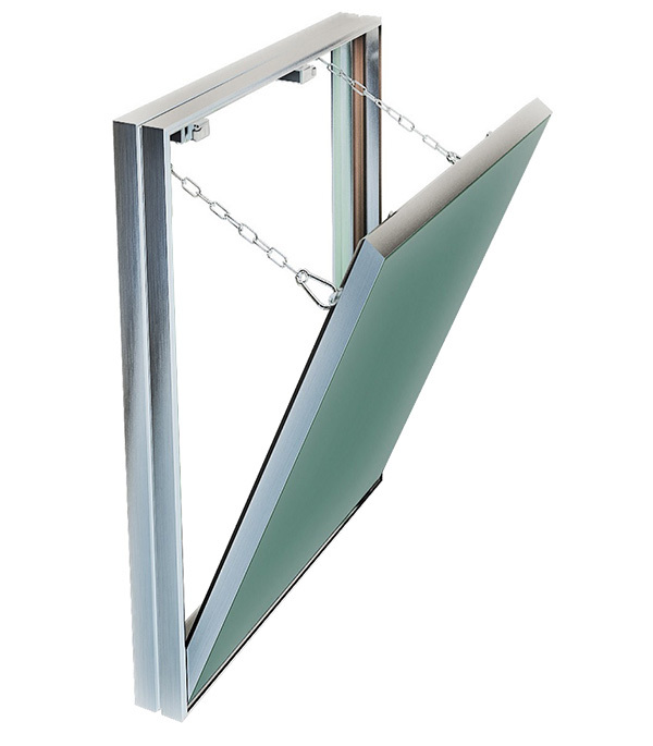 Предназначен для скрытого доступа к инженерным, вентиляционным, сантехническим, электрическим коммуникациям, а также к скрытым нишам. Не требует подрезки плитки, потому как оклеивается отделочными материалами внахлест, что позволяет сохранять раскладку на люке идентичной раскладке материалов на остальной части стены, оставляя люк невидимым. Подходит под облицовку любыми видами керамической плитки, а также мозаики толщиной не более 10 мм. Открывается нажатием. Дверца съемная, со страховочными цепочками.