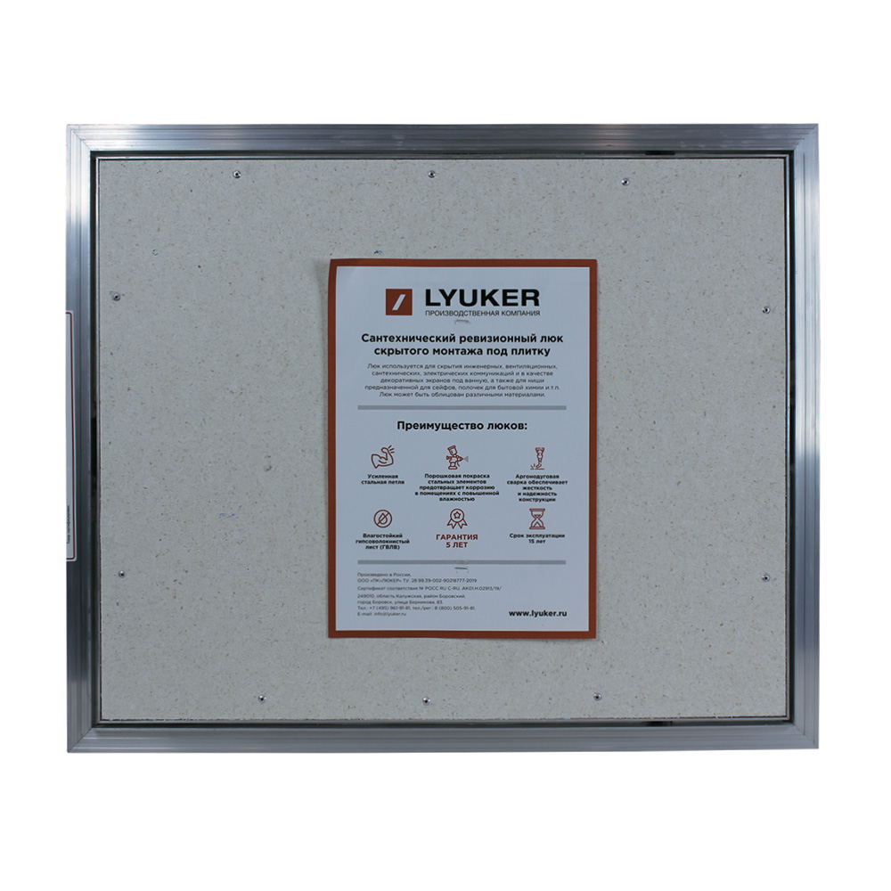 Люк ревизионный под плитку Lyuker AL-KR алюминиевый 500х600 мм скрытый нажимной