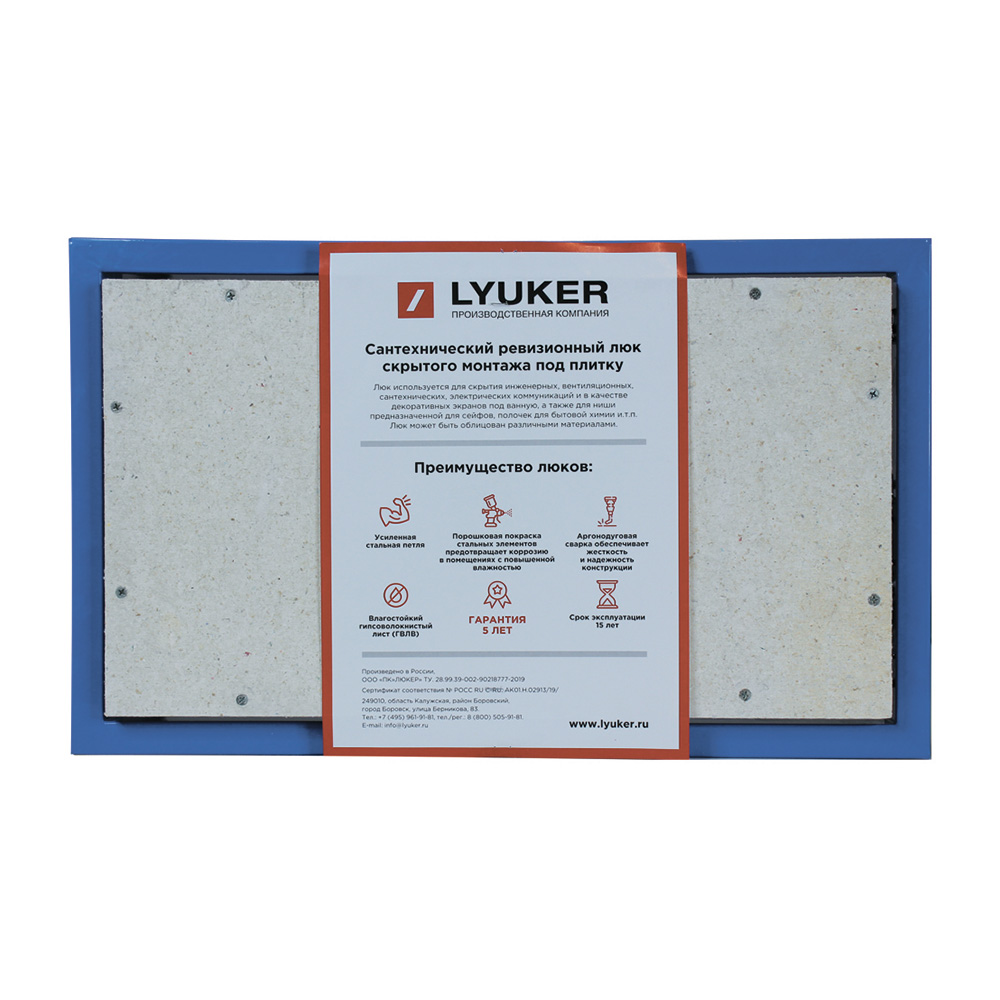 Люк ревизионный под плитку Lyuker К стальной 300х500 мм скрытый нажимной