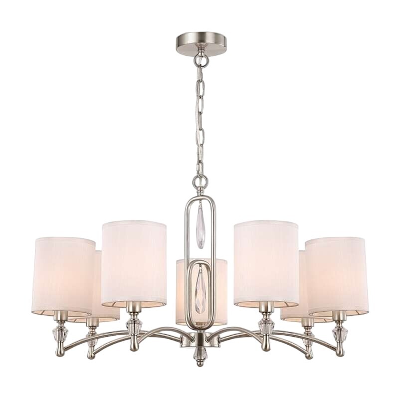 Предназначена для освещения внутренних помещений. Облегченная конструкция в форме арки без традиционного центрального стержня. За счет этого композиция кажется воздушной, а элегантный хрустальный элемент добавляет ей особый шарм. Металлическая арматура в цвете латунь. Тканевые матовые абажуры белоснежного оттенка завершают цельный образ и служат естественным рассеивателем для источников света. Используйте светильник в гостиных, спальнях, столовых и прихожих, выполненных в стиле неоклассика, классика, ар-деко, модерн. Широкая линейка предлагает различные типы светильников для комплексной зональной и основной подсветки — подвесные люстры на 12, 8, 7 и 5 плафонов, бра, настольную лампу и торшер.