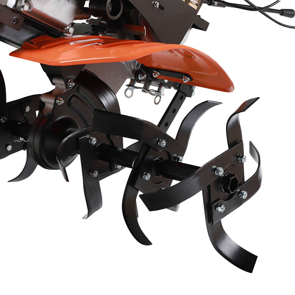 Комплектация: Мотоблок – 1 шт., Колесо пневматическое – 2 шт., Комплект фрез – 1 шт., Сошник – 1 шт., Держатель сошника – 1 шт., Крыло левое – 1 шт., Крыло правое – 1 шт., Держатель крыльев задний – 2 шт., Адаптер передний – 1 шт., Инструкция – 1 шт.