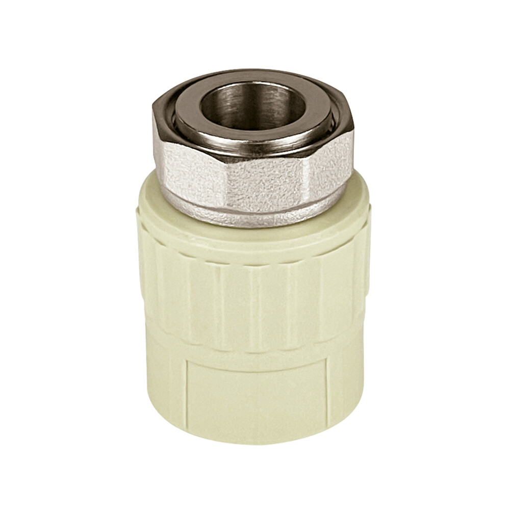 Муфта полипропиленовая представляет собой разъемное соединение между пластиковой и металлической трубами. Латунные части производятся методом горячего штампования, пластиковые — методом литья под давлением.