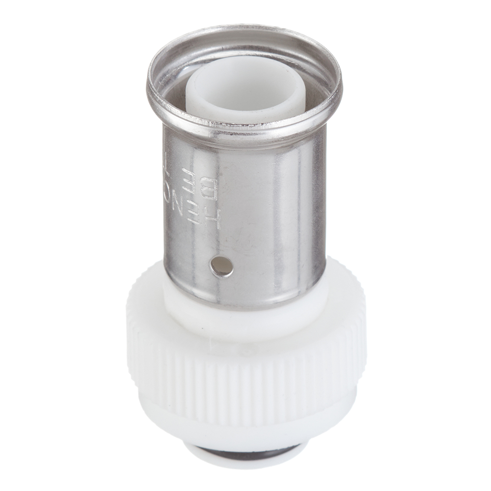 Главная / Каталог / Инженерные системы / Водоснабжение / Металлопластиковые трубы, фитинги и комплектующие / Опрессовочные фитинги (пресс-фитинги) / Муфта с накидной гайкой Henco (19PKW-2005) 20(пресс) х 3/4 ВР(г) под евроконус белая PVDF