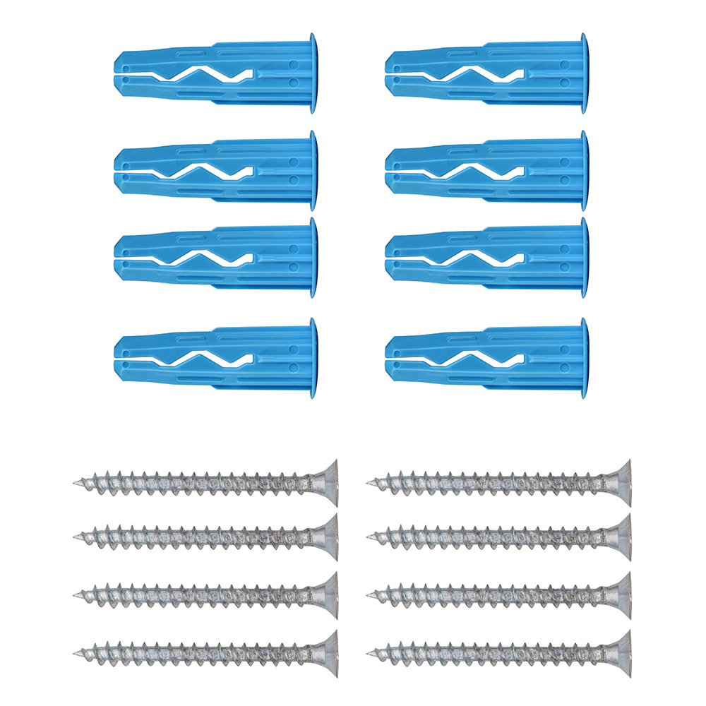 Состав комплекта: Дюбель 8×32 мм нейлон — 8 шт., Шуруп 4,5×40 мм оцинкованная сталь — 8 шт.