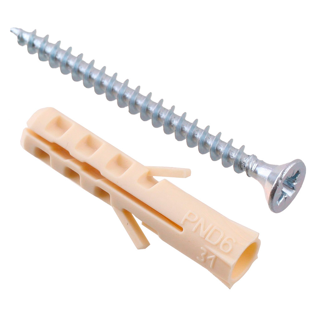 Состав: Дюбель нейлоновый распорный 6х30 — 8 шт; Саморез универсальный 3,5х40 — 8 шт.