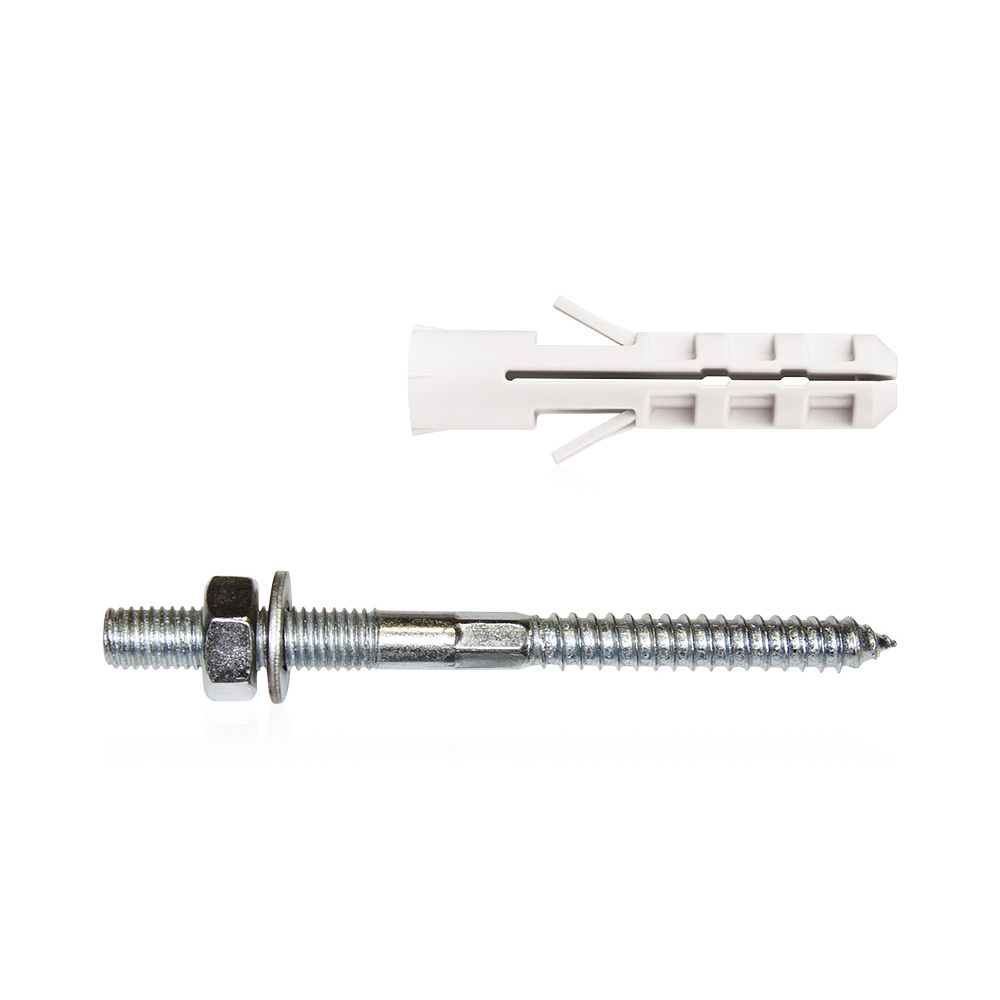 Состав набора: Дюбель 14×70 мм нейлон — 2 шт. Шпилька сантехническая 10×120 мм TORX T25 оцинкованная сталь — 2 шт.