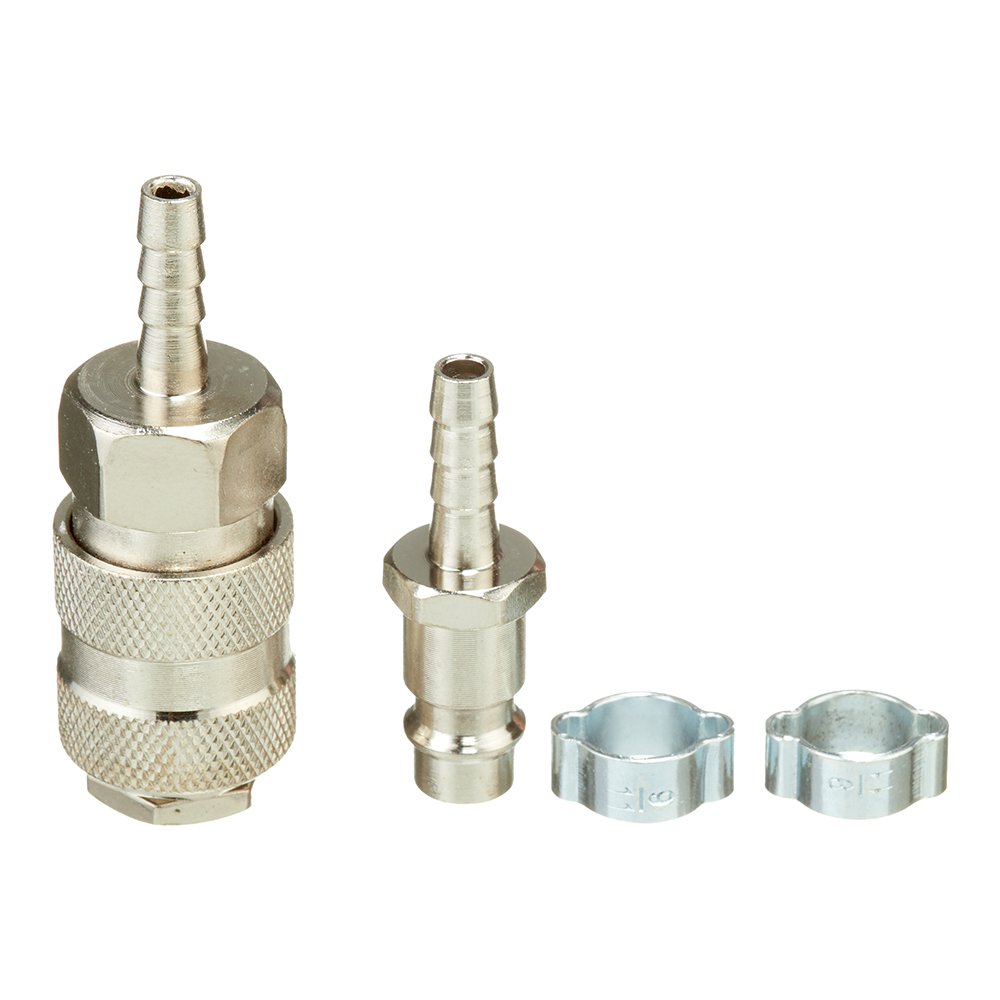 Набор Fubag 180420 В используется совместно с компрессорным оборудованием для соединения шланга с пневмоинструментом. Крепится к инструменту с помощью соединения рапид, а к шлангу — елочкой.