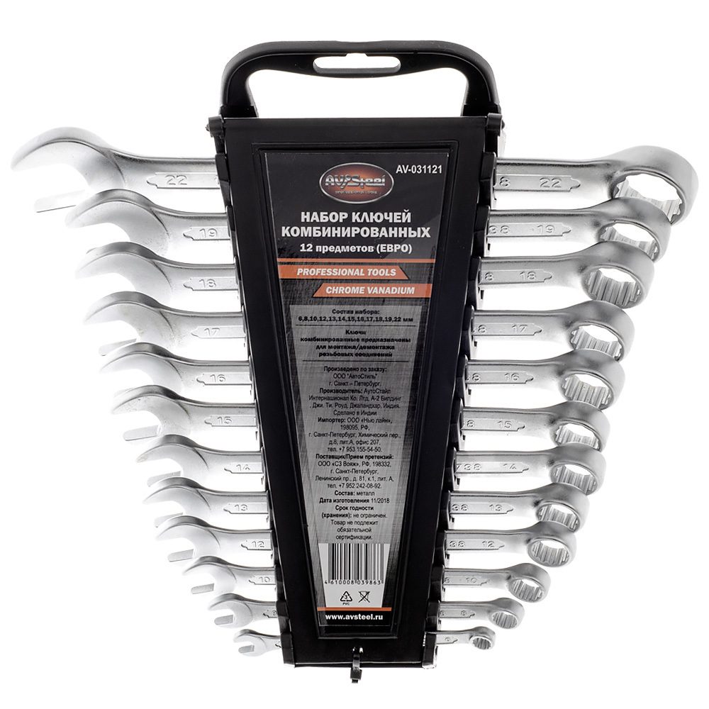 Набор комбинированных ключей AV Steel AV-031121, 12 предметов, представляют собой сравнительно небольшой комплект инструмента, который охватывает диапазон от 6 до 22 мм. Хромоникелевое покрытие обеспечивает увеличенный срок службы.