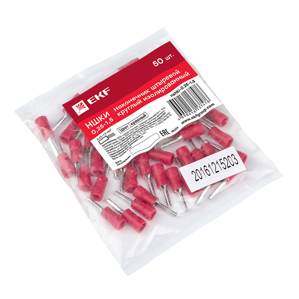 Наконечник штыревой круглый изолированный EKF PROxima НШКИ d4,3 мм 0,25-1,5 кв.мм (50 шт.)