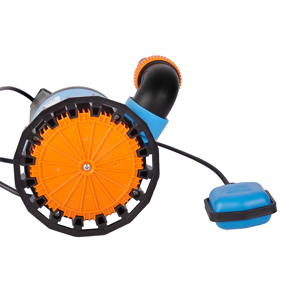 Дренажный насос оснащен однофазным электрическим двигателем мощностью 400 Вт с системой охлаждения водой, что позволяет эксплуатировать его в режиме неполного погружения.