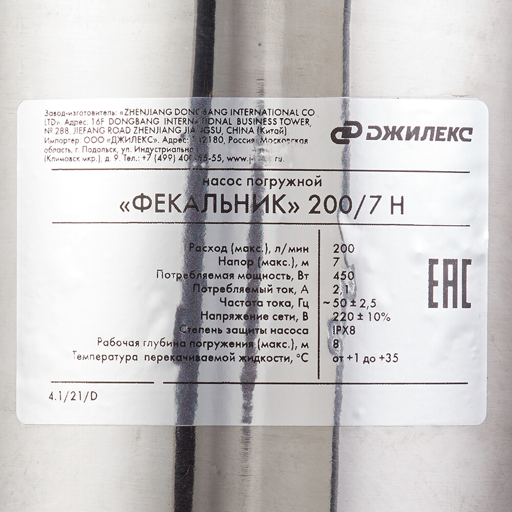 Насос фекальный Джилекс 200/7 Н (5305) для грязной воды 200 л/мин