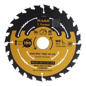 Диск пильный по дереву Rage Furious Fast cut 190х30х1 мм 24 зуба (594232)