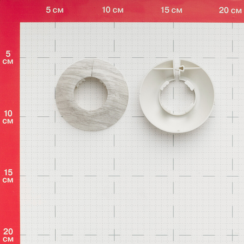 Предназначен для декорирования и скрытия неровностей в месте примыкания трубы (батареи) к полу (паркет, кафель, ламинат, линолеум), стенам или потолку.
