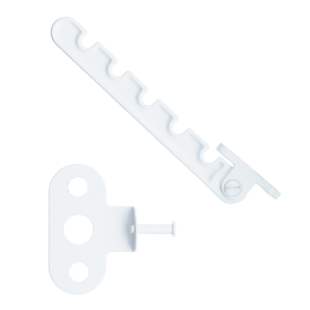 Элемент оконной фурнитуры, позволяющий регулировать величину открывания поворотной створки с зазором между створкой и рамой приблизительно от 10 до 70 мм. Предназначен для естественной вентиляции помещения. Выполнен из оцинкованной стали, покрытой белой эмалью.