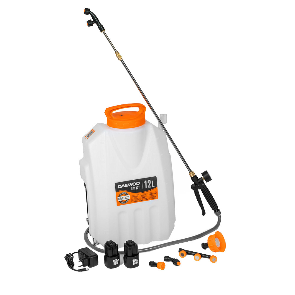 Аккумуляторный садовый опрыскиватель Daewoo DSA 12 Li SET будет полезен для сезонной обработки растений от вредоносных насекомых и болезней. Также агрегат будет крайне полезен для борьбы с сорняками. Автоматическая система распыления, питающаяся от литий-ионного аккумулятора емкостью 3 Ач, избавляет от необходимости ручного подкачивания помпы, что делает работу намного более эффективной и значительно экономит время. Наличие двух батарей в комплекте гарантирует время работы до 4 часов. Максимальная производительность модели DSA 12 Li Set составляет 5 л/мин. Сила потока регулируется от 1,5 до 5 бар.