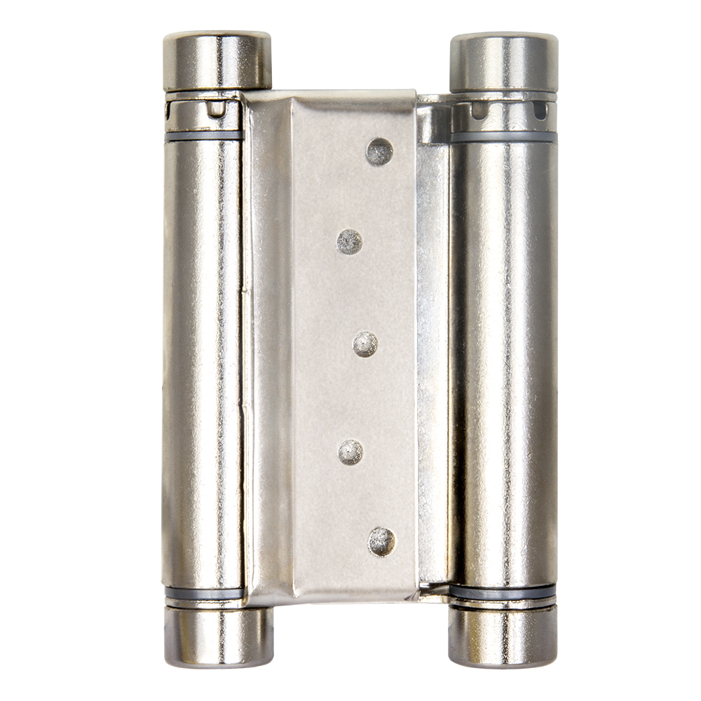 Петля двусторонняя (она же барная, пружинная, петля метро) применяется для деревянных дверей. Позволяет двери открываться в обе стороны, возвращает дверь в центральное положение (в створ). Втулки петель выполнены из техно-полимера, обеспечивают амортизацию, гарантируют тихую и плавную работу, увеличивают срок службы более 200 000 циклов. Специальный тормоз замедляет движение двери и уменьшает количество колебаний, это дает возможность использовать двери большего веса и размера. В комплекте с петлями идут полимерные пластины, облегчающие установку и гарантирующие надежное крепление. Толщина дверного полотна 100.4 = 25-30 мм; 125.5 = 30-40 мм.