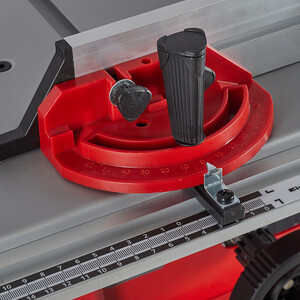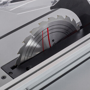 Параллельный упор обеспечивает высокую точность продольных пропилов, а поперечный упор и система наклона пильного диска позволяют совершать точные пропилы под углом. Боковые расширители увеличивают рабочую поверхность стола. Защитный кожух диска с подключением к системе удаления опилок обеспечивает чистоту рабочего места. В корпусе пилы предусмотрены места для хранения всех поставляемых вместе с пилой комплектующих.
