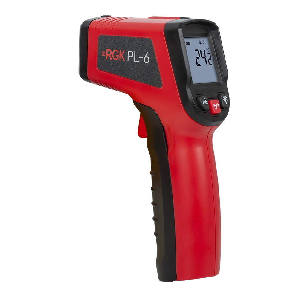 Инфракрасный пирометр RGK PL-6 — это инструмент для бесконтактного температурного контроля любых твердых поверхностей в диапазоне от -30 до +400 C с точностью ± 2 C. Прибор применяется для получения значений температуры трубопроводов, батарей, котлов, двигателей, электропроводки и т.д. Прибор подходит как для специалистов, работающих на производстве или в сфере ЖКХ, так и для бытового использования.