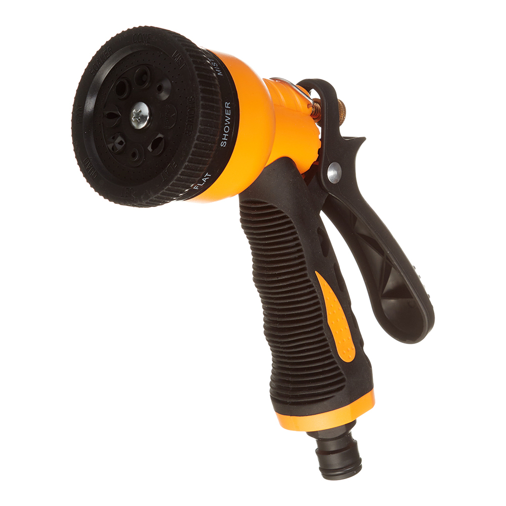 Применяется для полива растений на дачном участке. Оснащен регулировкой интенсивности распыления в 8 режимах от слабой до жесткой струи для эффективного полива участка. Эргономичная рукоятка с обрезиненным покрытием обеспечивает крепкий хват без скольжения руки. Корпус из пластика отличается прочностью и устойчивостью к механическим повреждениям.