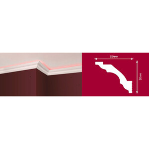 Плинтус потолочный из пенополистирола 50х50х2000 мм под натяжной потолок с возможностью светодиодной подсветки Плинтэкс I50/50SC