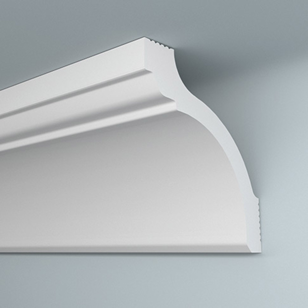 Предназначен для внутренней декоративной отделки жилых помещений. Классическая модель плинтуса имеет оптимальную плотность, которая обеспечивает однородность структуры и гладкую матовую поверхность. Незначительный вес и наличие клеевых бороздок на монтажной области плинтуса создают дополнительные удобства при монтаже. Не требует обязательной окраски. Крепится к стене и потолку при помощи шпаклевки или жидких гвоздей.
