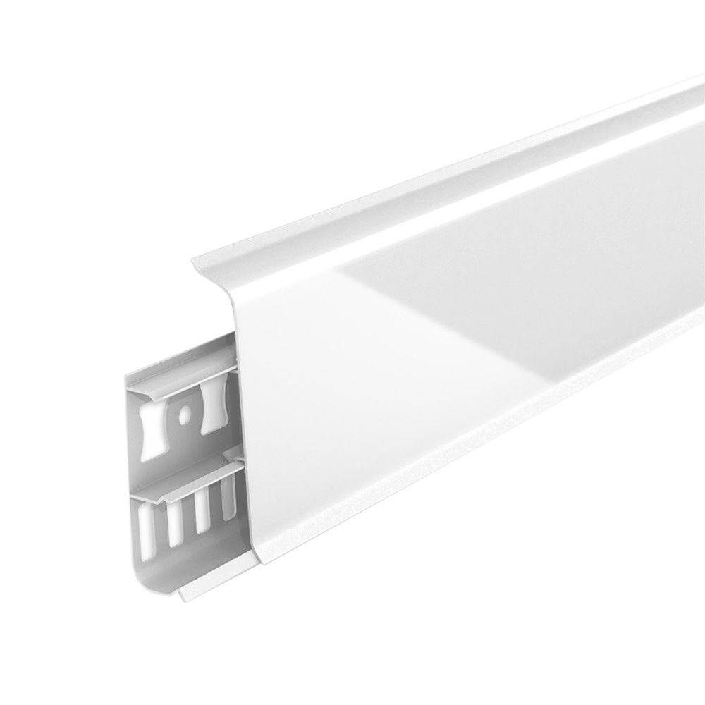 Плинтус ПВХ напольный Деконика 85 мм белый глянцевый 2200 мм Г-профиль с кабель-каналом
