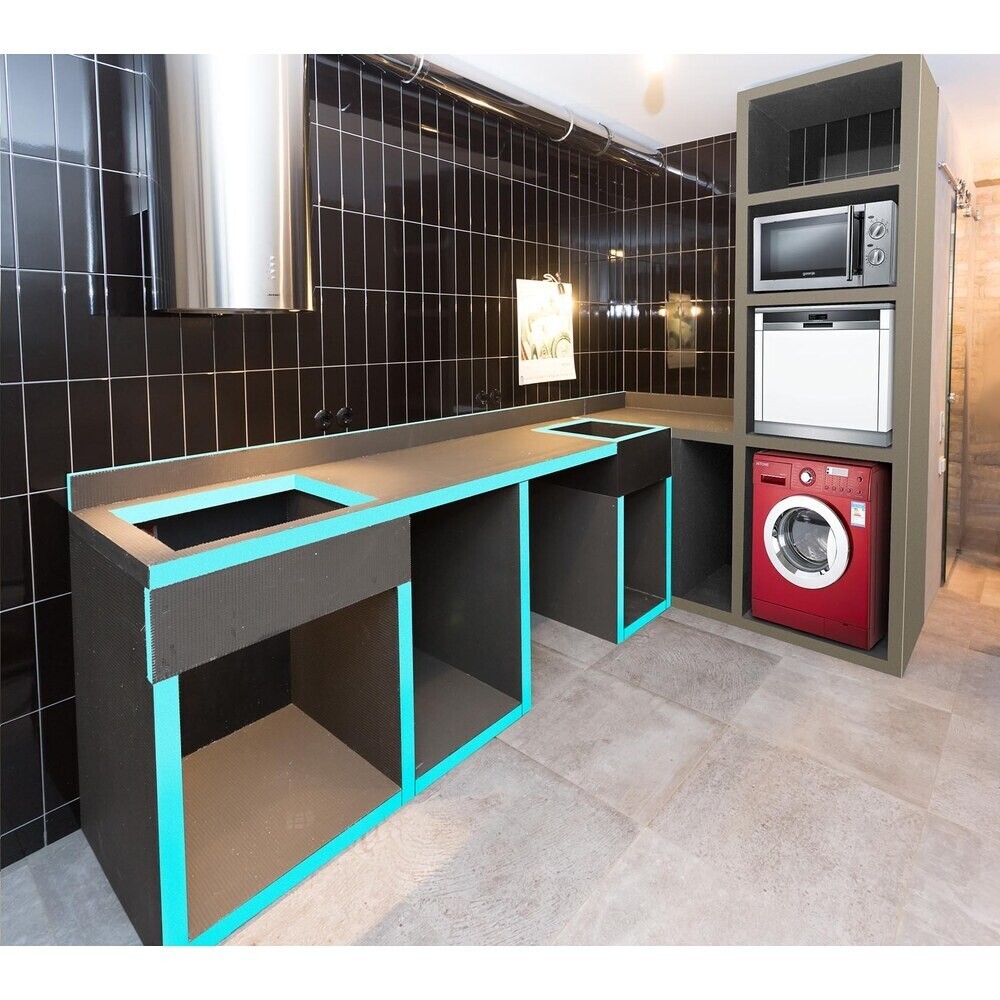 Теплоизоляционная панель с двухсторонним армированием из стекловолоконной сетки и нанесением на нее полимерцементного состава при заводских условиях имеет хорошие тепло и гидроизоляционные свойства, благодаря которым панель можно использовать под 100% финишную отделку штукатуркой, шпатлевкой, краской, кафелем или декоративным камнем на плиточный клей.