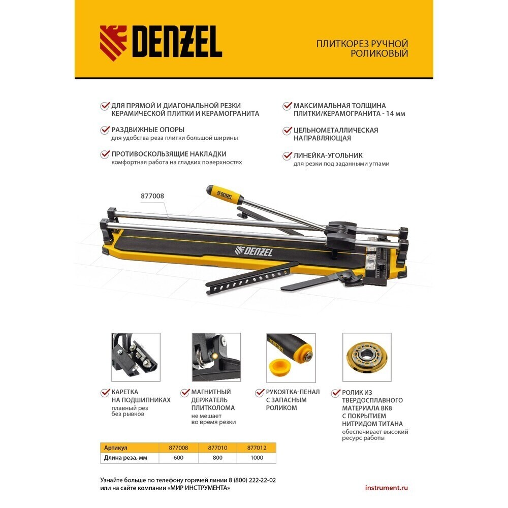 Плиткорез ручной Denzel 1000 мм на подшипниках (877012)