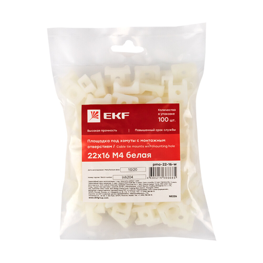 Площадка для крепления стяжек PROxima 22х16 мм полиамидная белая (100 шт.) (pmo-22-16-w)