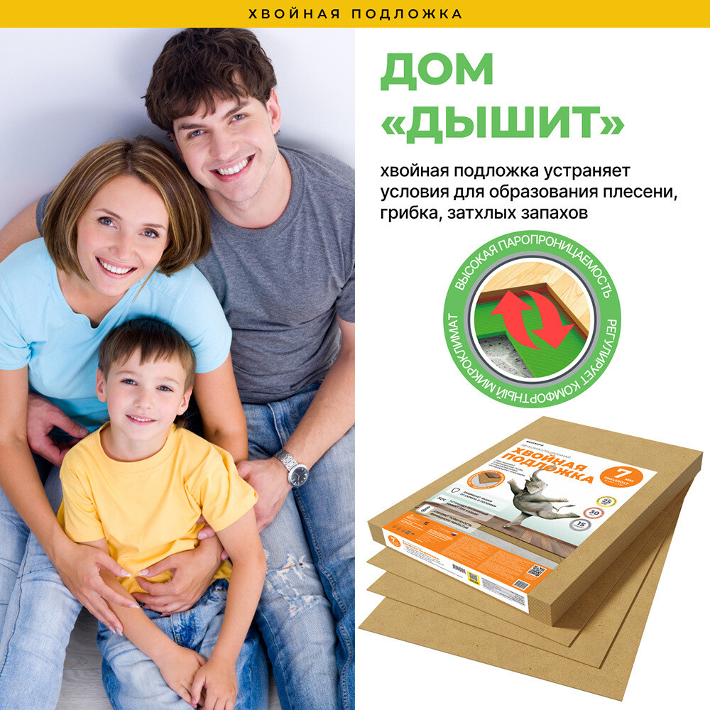 Звукоизоляционная хвойная подложка под ламинат, LVT, инженерные полы, устанавливаемые «плавающим» способом.