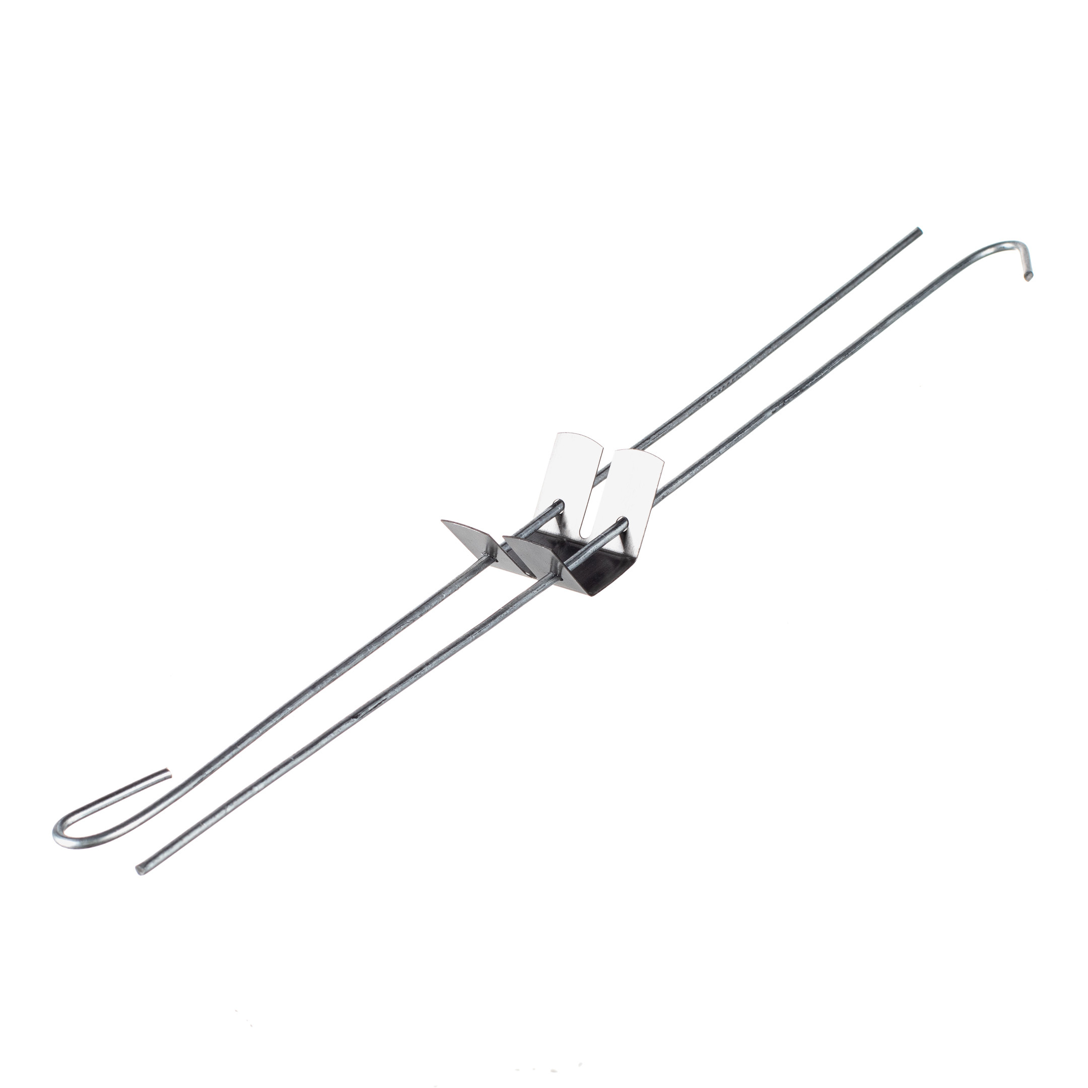 Предназначен для крепления каркаса подвесного потолка к несущему основанию. Состоит из двух крепежных спиц длиной по 30 см и соединяющего их зажима. Толщина спицы 3 мм. Позволяет опустить потолок максимум на 0,6 м.