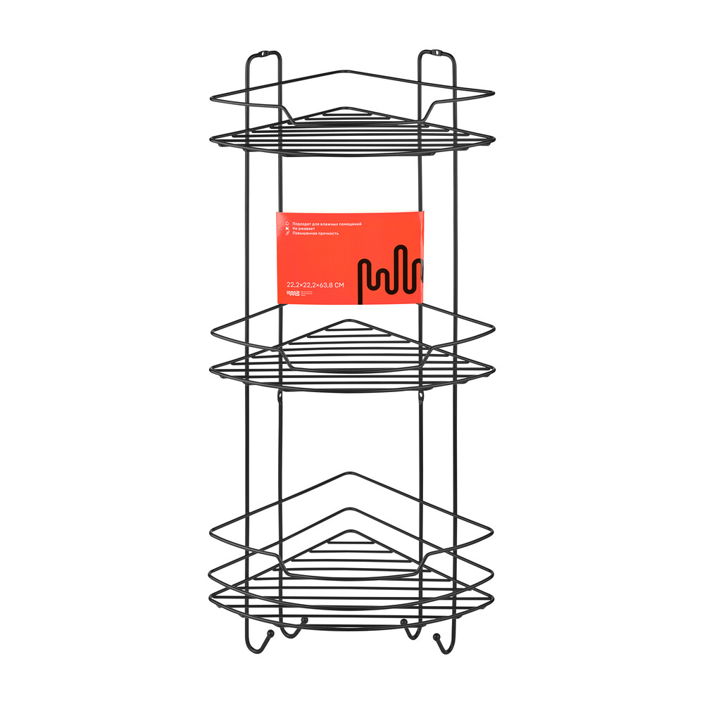 Полка для ванной ЧМЗ Лофт угловая трехъярусная 222х222х638 мм металл черная (513-006-01)
