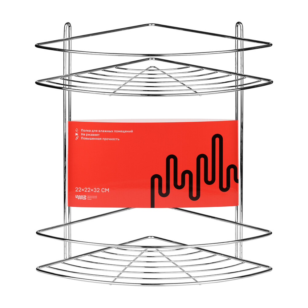 Полка для ванной ЧМЗ угловая двухъярусная 220х220х320 мм металл хром (501-005-27)