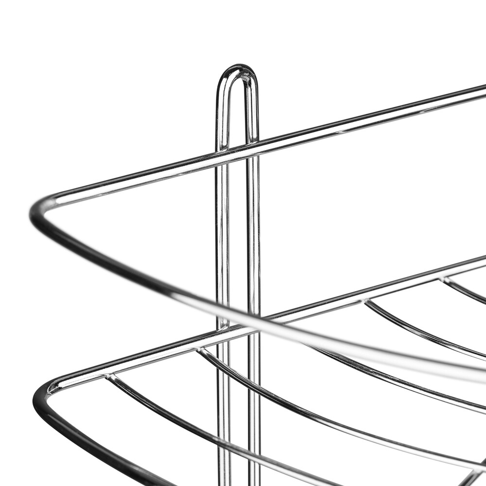 Двухъярусная угловая настенная полка из стали цвета хром.