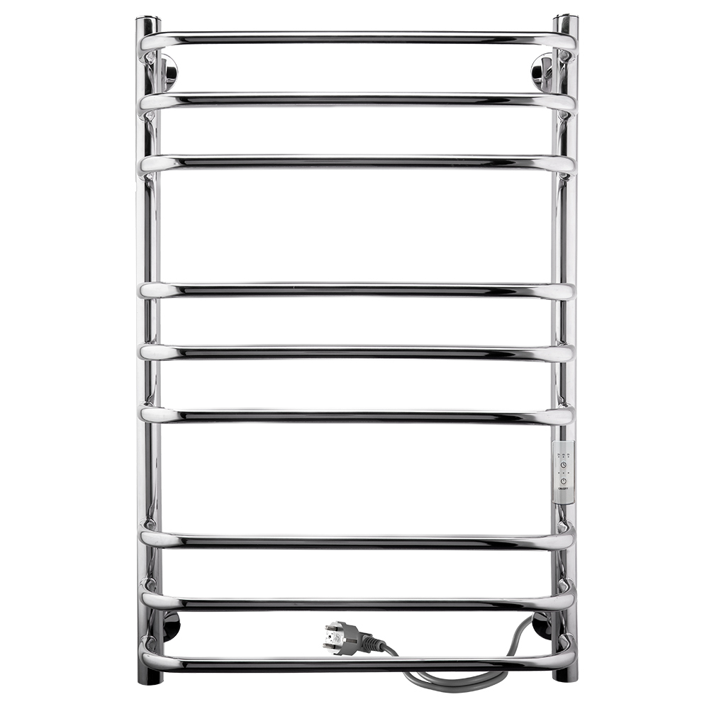 Полотенцесушитель электрический Indigo Brace Lux в классической форме «лесенка». Выполнен в цвете «хром», имеет безупречный блеск благодаря электрохимической полировке. С помощью терморегулятора можно регулировать температуру в диапазоне от 40 до 50 градусов (с шагом 5 градусов) — уровень температуры показывается количеством горящих светодиодов. Таймер можно настроить на отключение через 2, 4, 6 часов. Подключение осуществляется двумя способами: скрытое подключение к электропроводке через модуль скрытого подключения в стену или прямым электропроводом длиной 1,1 метра в розетку.