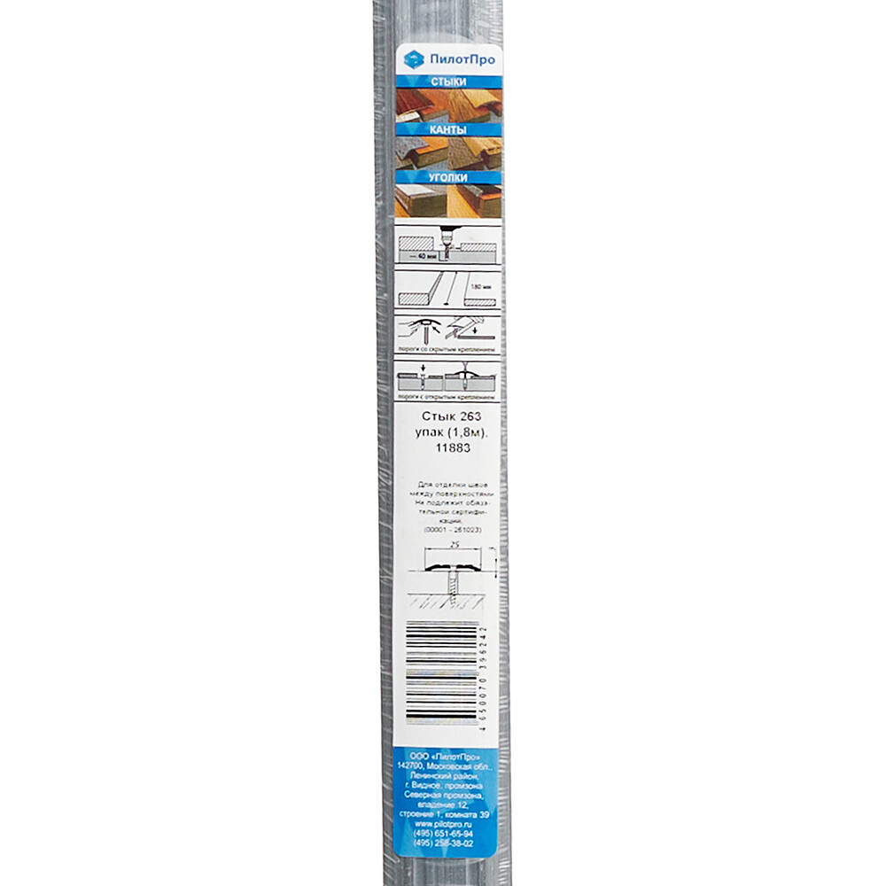 Предназначен для закрытия одноуровневых стыков различных напольных покрытий. Комплектуется саморезами и дюбелями.