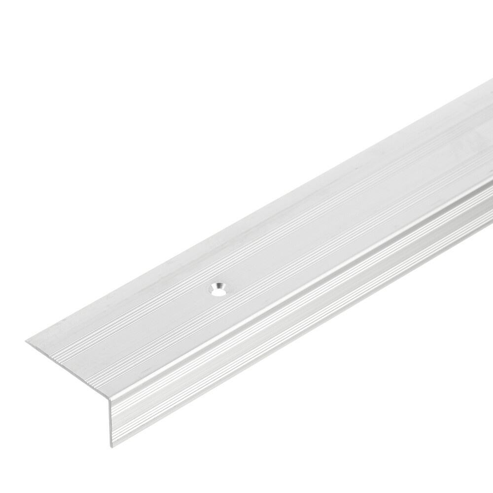 Порог угловой. Предназначен для фиксации краев напольных покрытий на ступенях, защиты угловых поверхностей ступеней, а также для препятствия скольжению. Комплектуется саморезами и дюбелями.